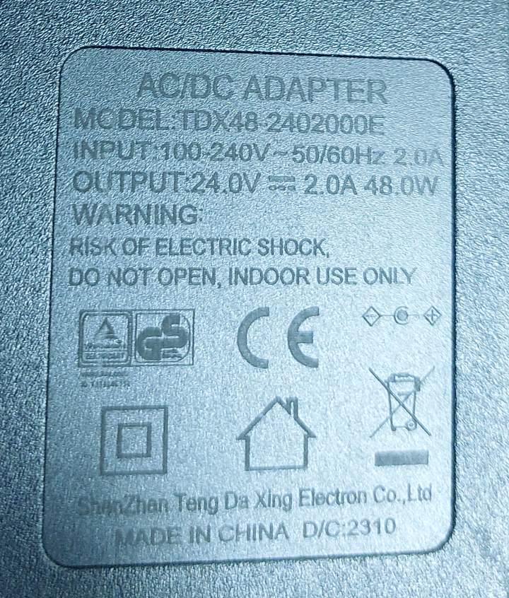 I was then surprised to notice that the power consumption was in the range of 80 W, not 48 W as per official rating, see graph and power adapter: